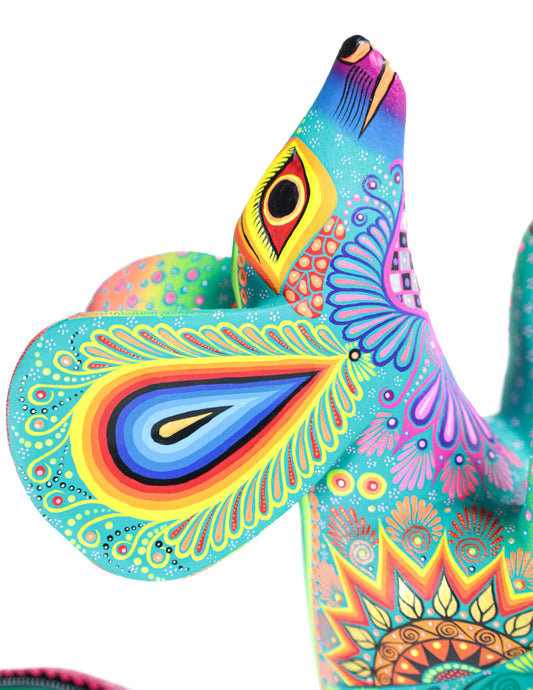 Alebrijes symbolize Spirit Guides, as they were described in the 20-day cycle of the Zapotec calendar. Their role is to link the spirits and the real world and guide a person through their lives.