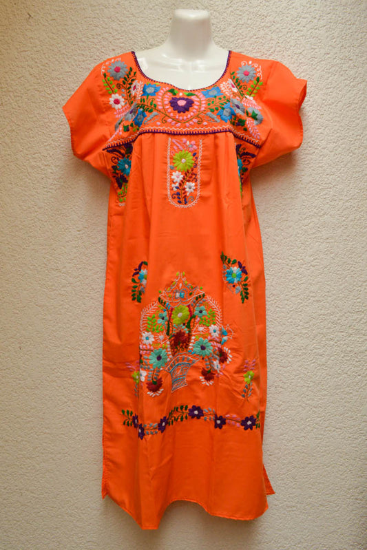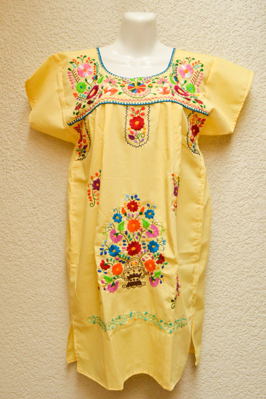 These traditional Mexican dresses (or blouses) for women are usually white and colourfully embroidered with glorious flowers, vines and greenery on them.