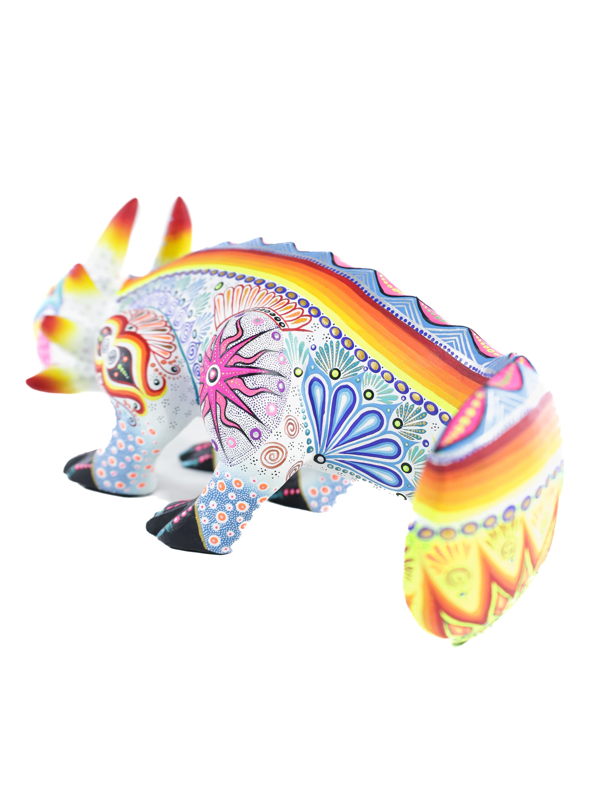 Hand-carved in Oaxaca, Mexico, this rabbit alebrije blends living Zapotec symbolism with the modern alebrije style popularized by Luis Mota Calvo. In Zapotec tradition, animals hold ritual and spiritual meaning—this piece channels that heritage with vibrant patterns and meticulous brushwork.